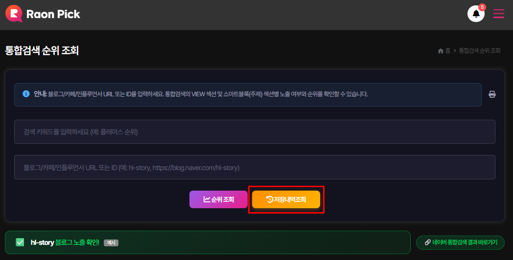 '통합검색 순위 저장 및 열람 기능'이 새롭게 추가되었습니다.